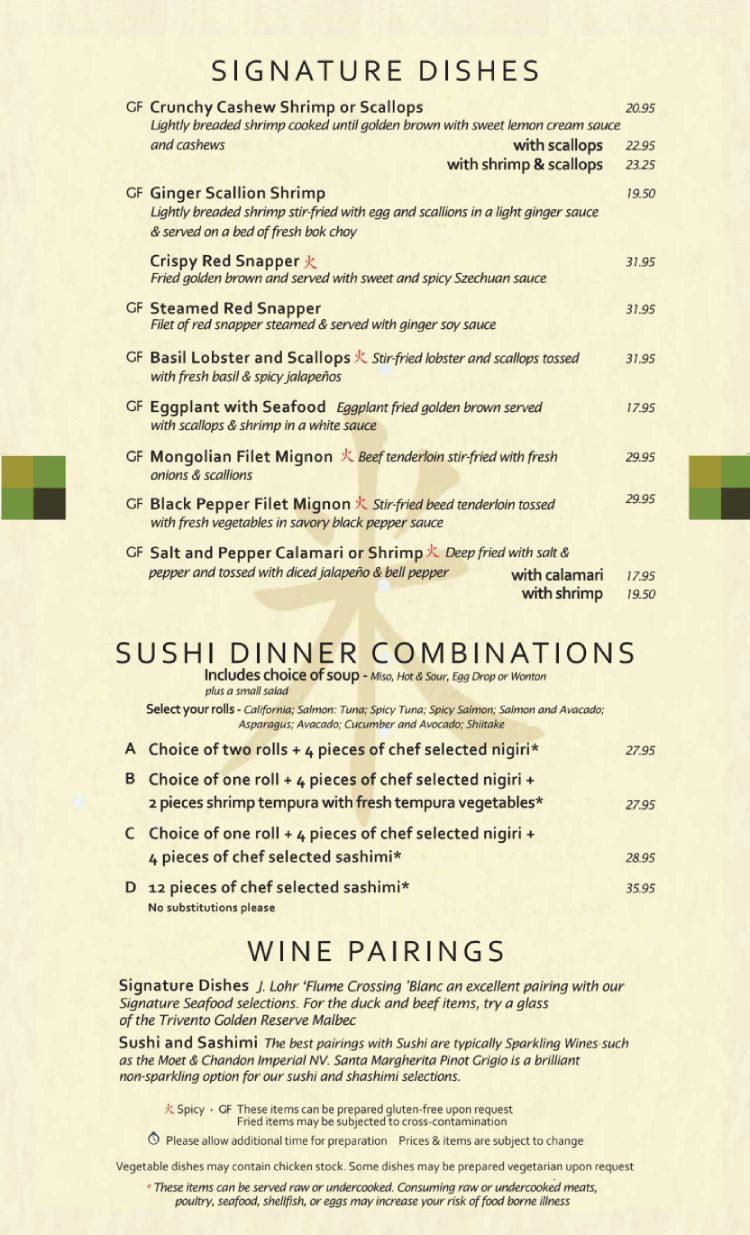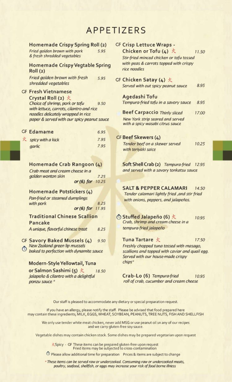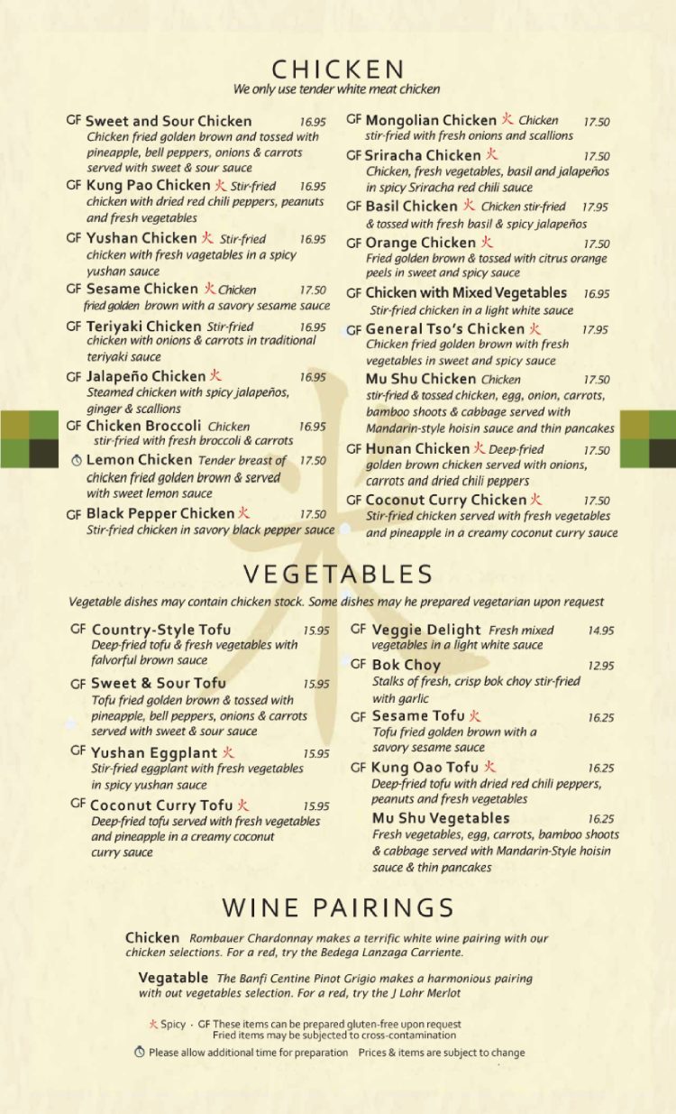 MENU ITEMS AND PRICES ARE SUBJECT TO CHANGE